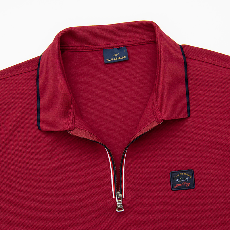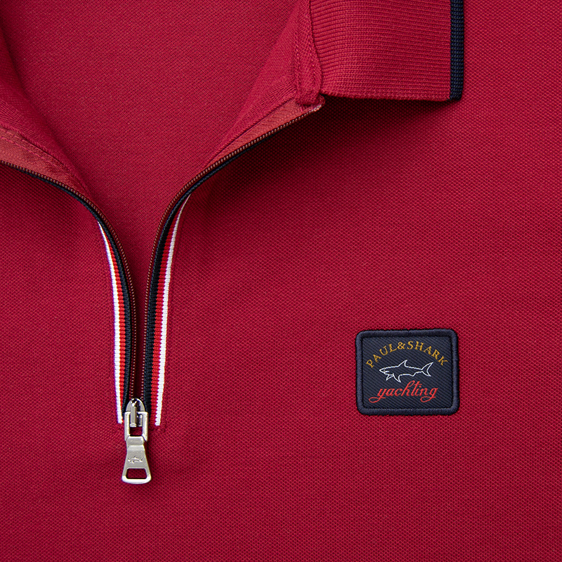 Классическое поло из хлопкового пике с застёжкой на замке. Стиль модели: аккуратность и минимализм. На груди вышит жаккардовый шеврон, на рукаве - шеврон с вышивкой. Застёжка декорирована контрастной тесьмой. Внизу боковые разрезы, рядом пришита жаккардовая бирка.