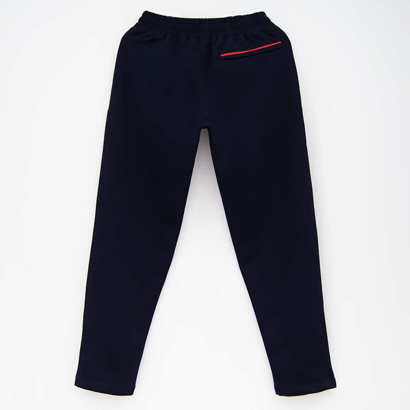 Передние карманы прорезные, на замке, закрыты листочками, сзади - карман-обманка. Листочки украшены контрастной киперной лентой, спереди пришит шеврон.