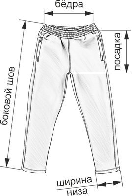 | Бёдра | 50 | 52 | 54 | 56 | 58 | 62 | 64 | 66 |